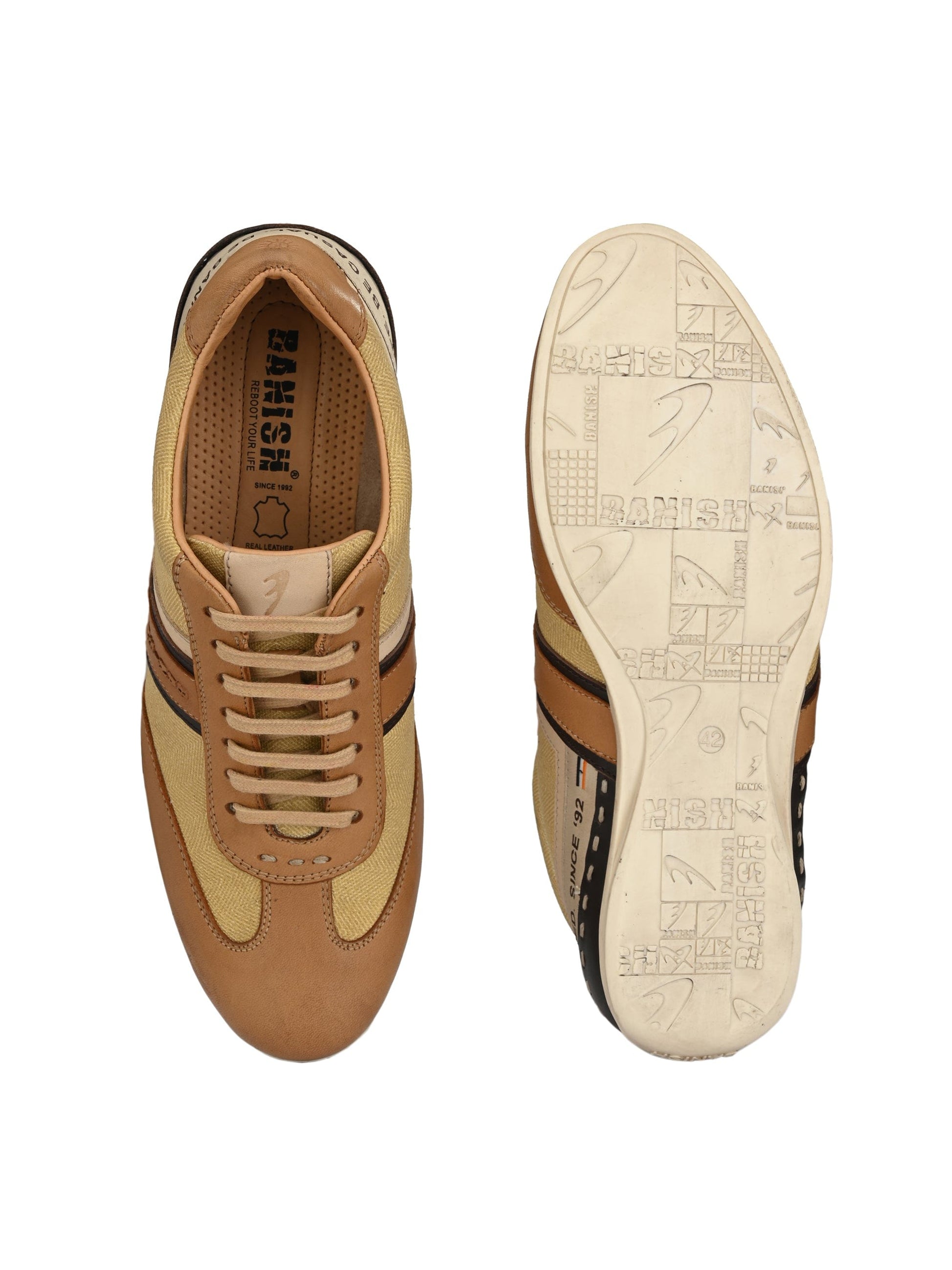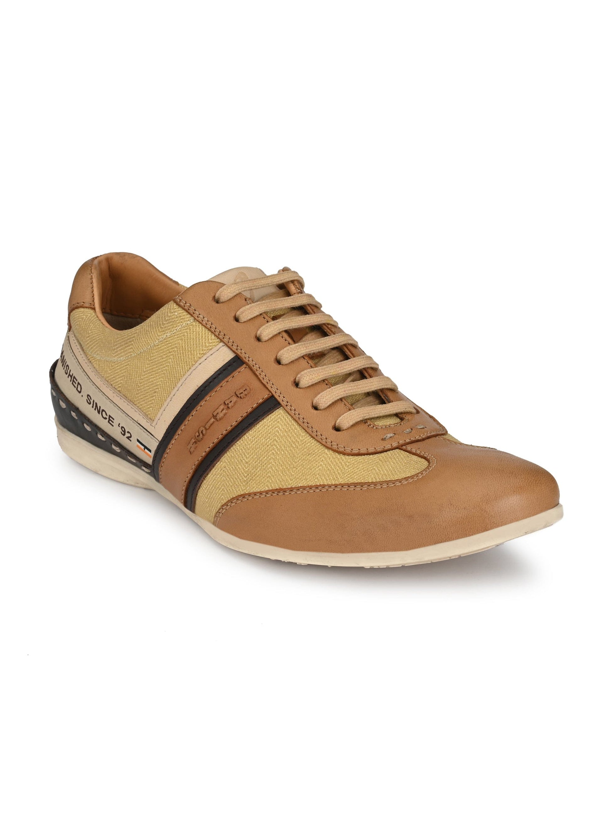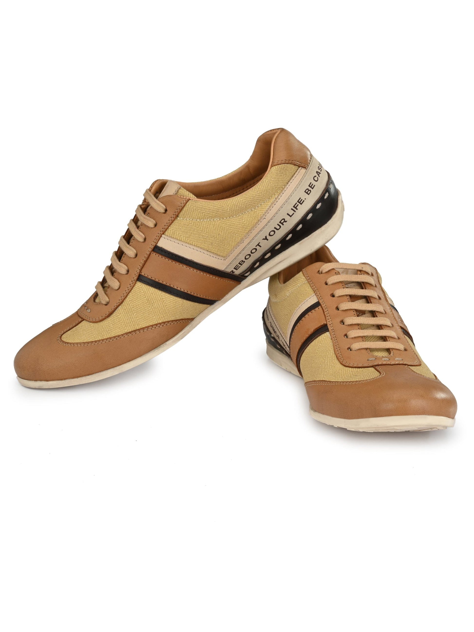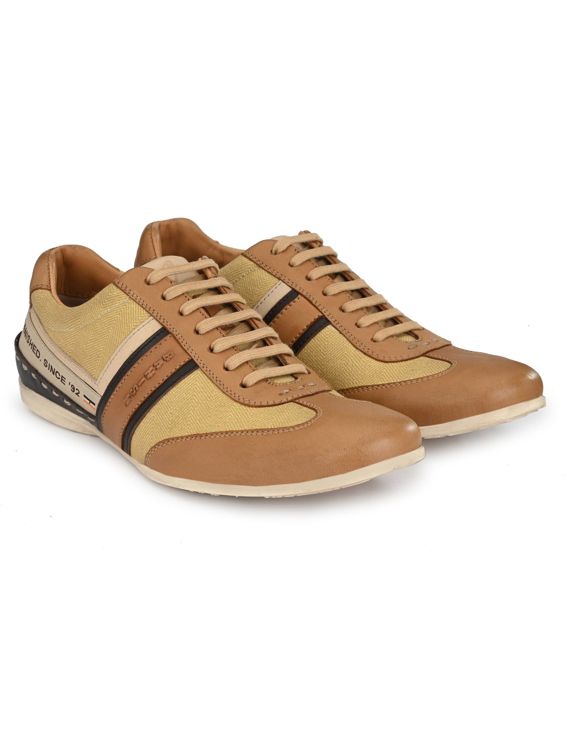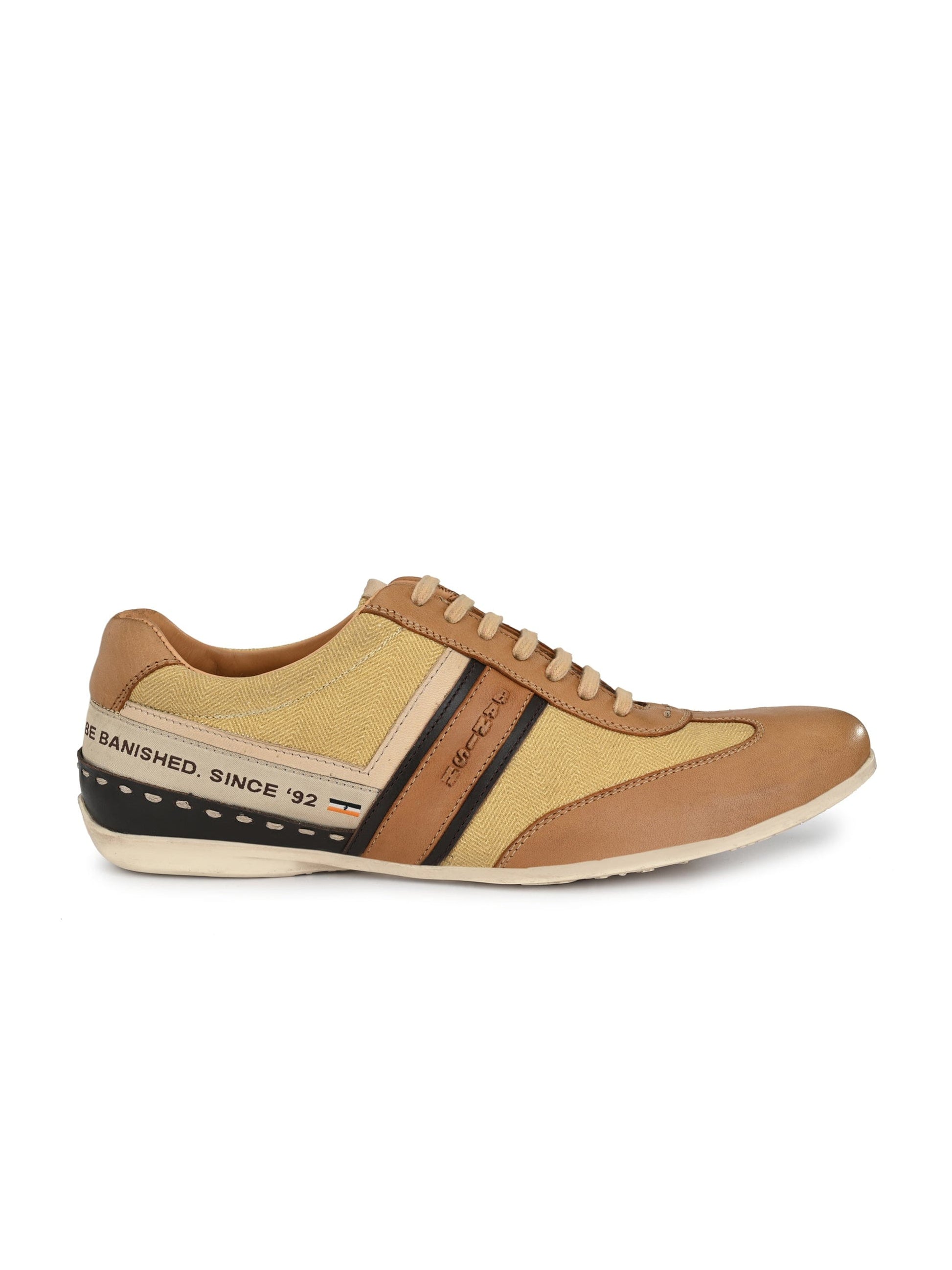 Exotic Copper Lace-Ups are the premium casual sneakers handcrafted with Natural Crust Leather along with premium Fabric.