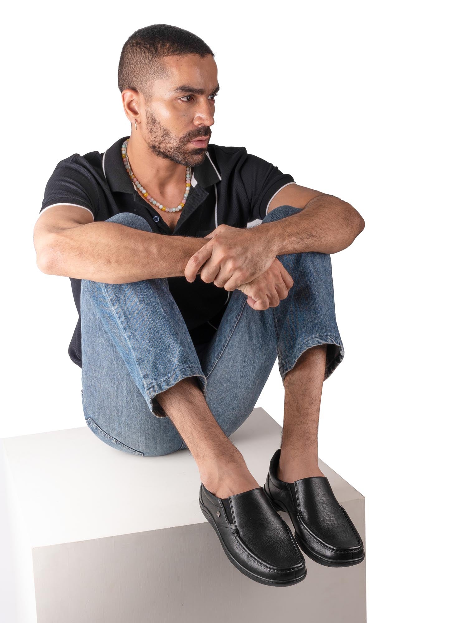 Gladiator Onyx are the ultimate Flexible Moccasins for your feet. Made with Natural Cow Milled Leather, these Moccasins are carefully hand-stitched and woven by local artisans. The Rubber cut sole gives a Casual look along with Flexibility and Comfort.