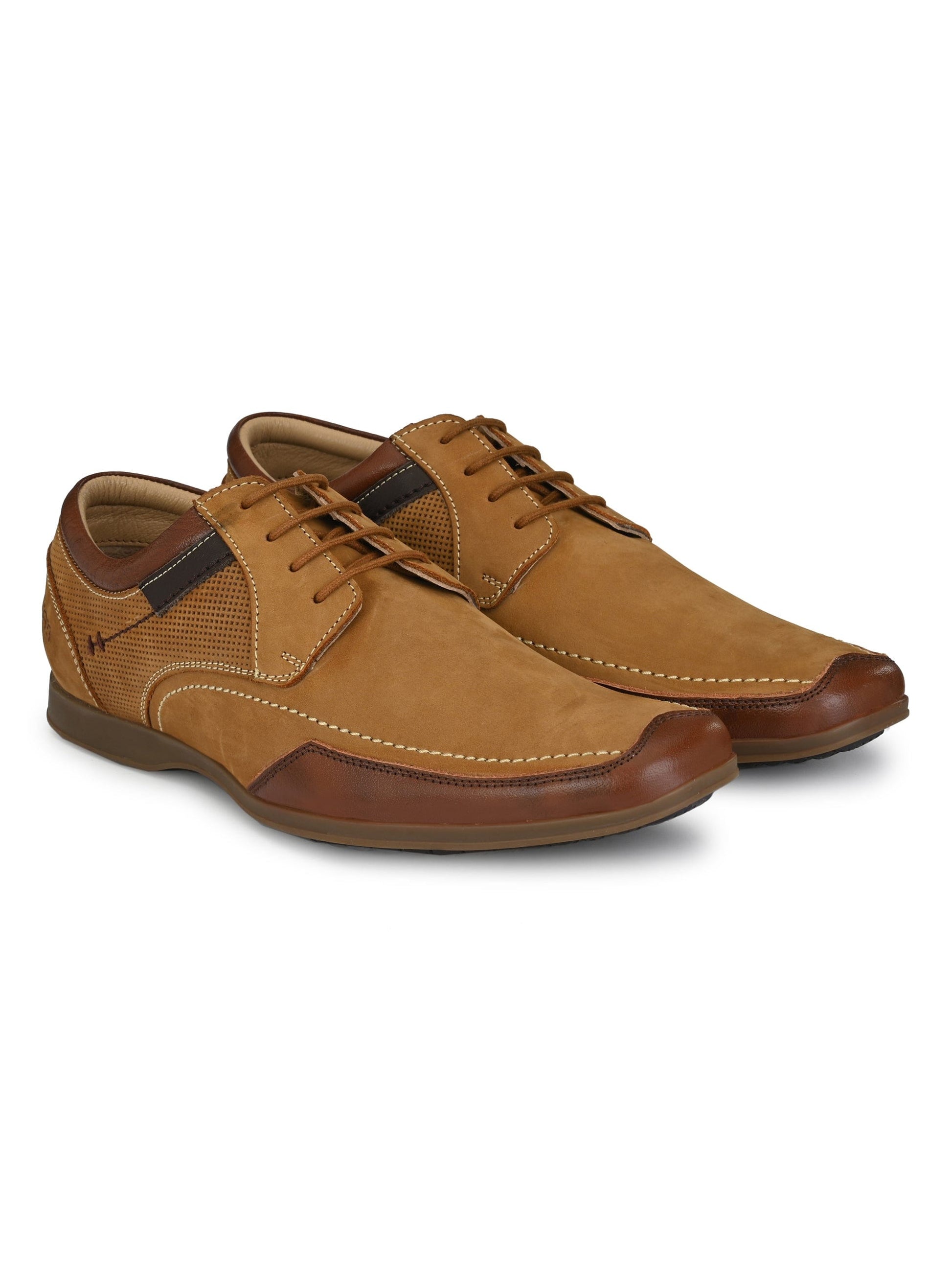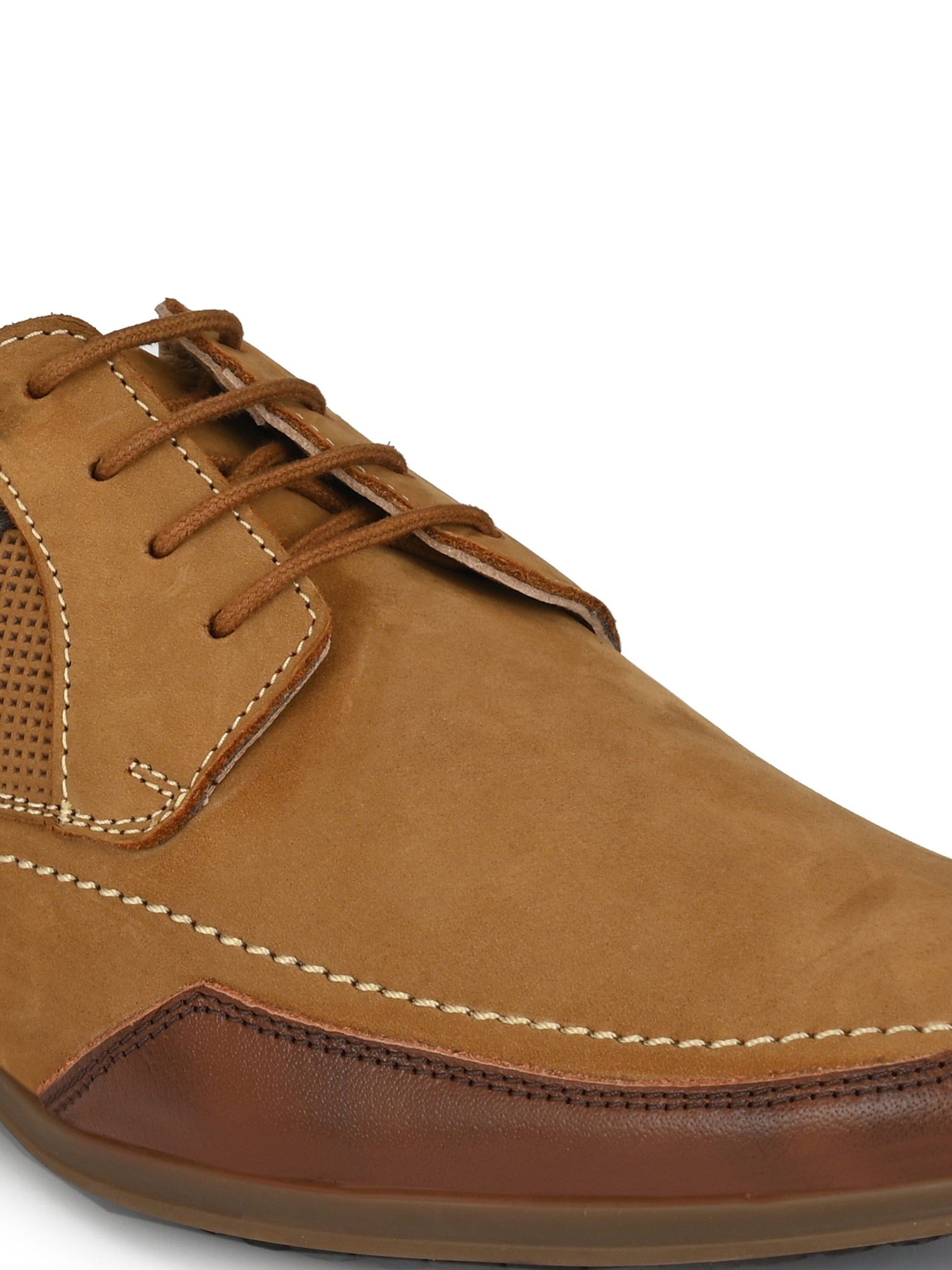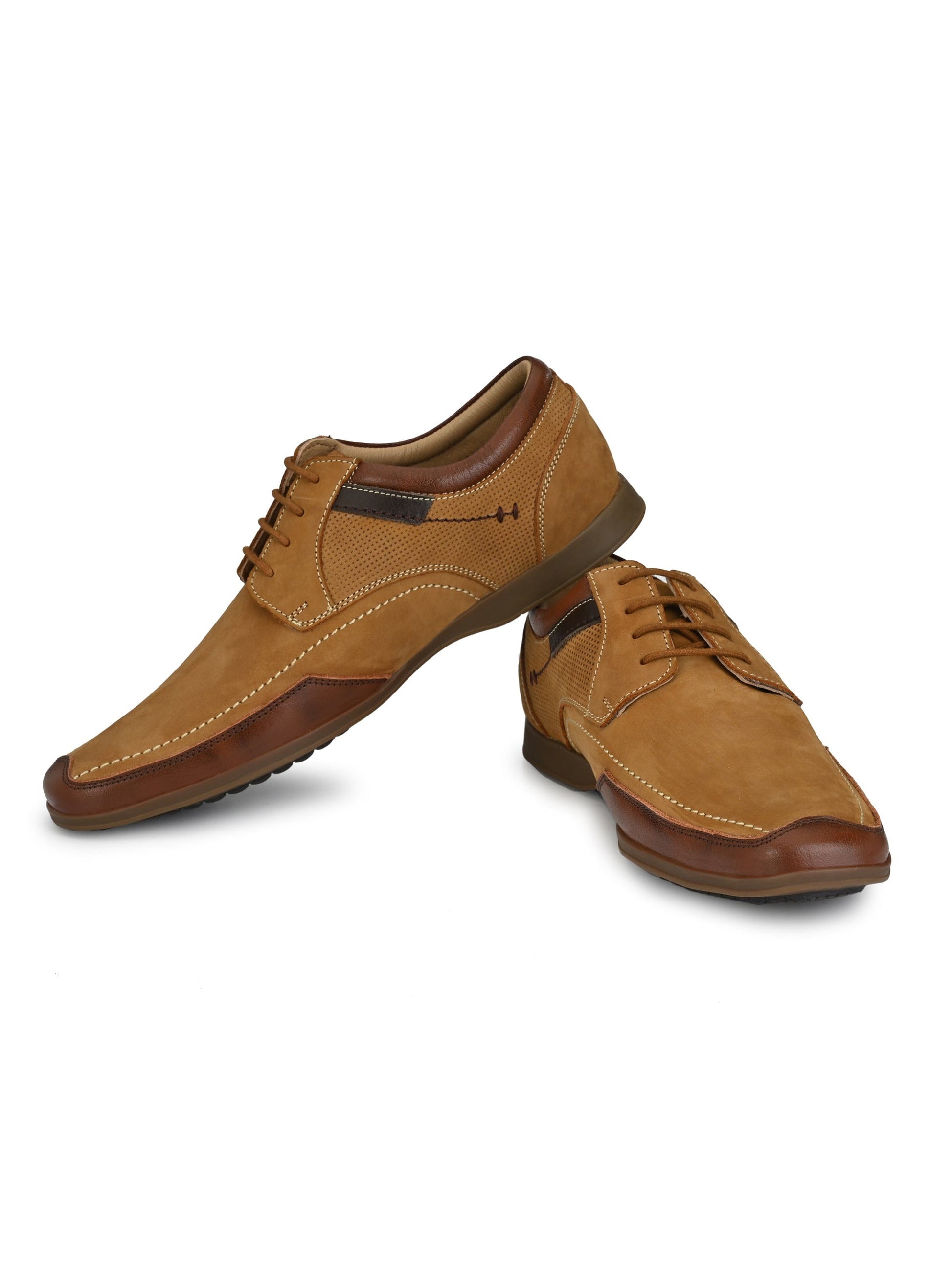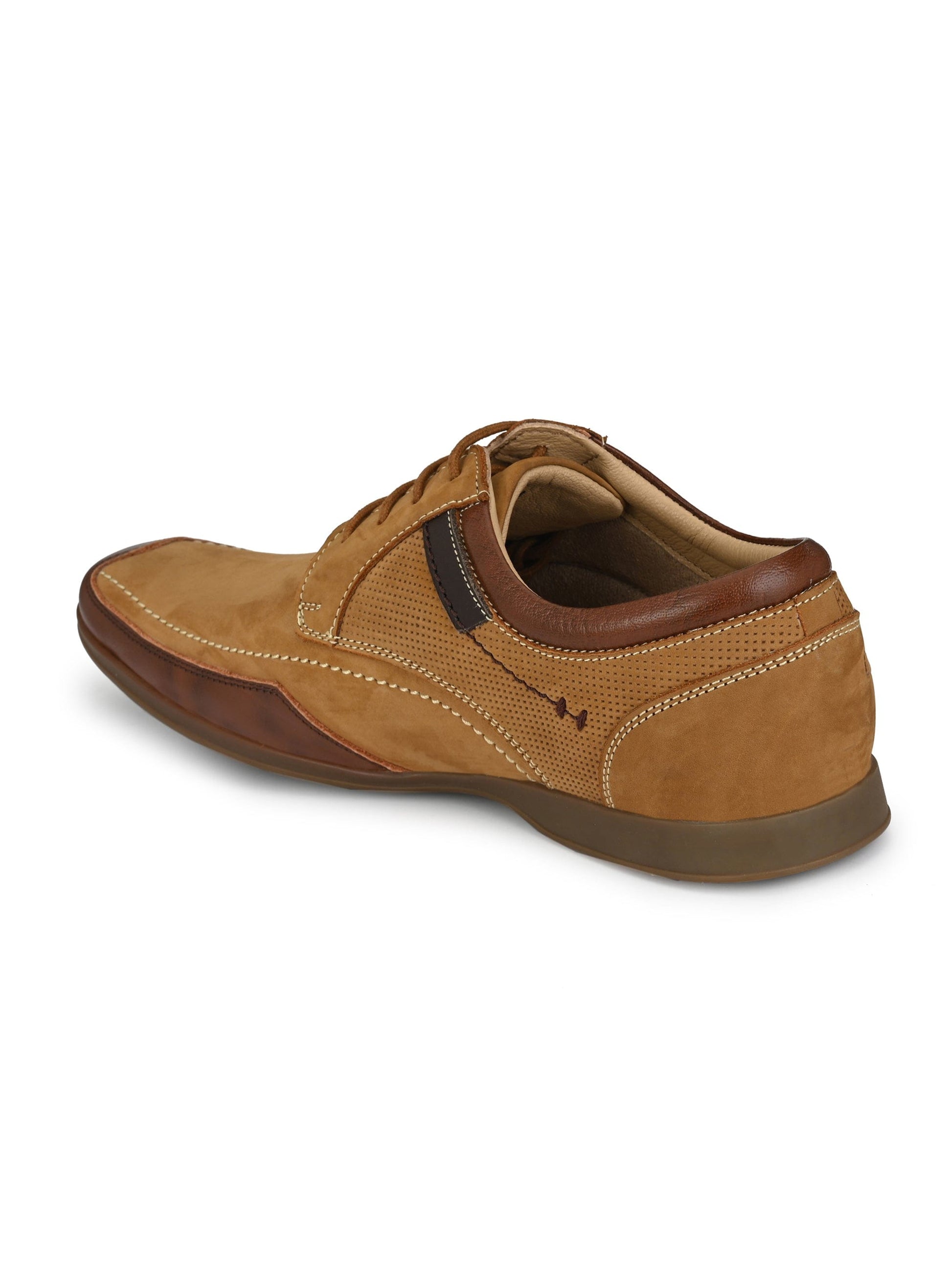 Mike Sepia Lace-Ups come with the most Premium Cow Nubuck Leather, which makes them class apart. Dual coloured TPR sole gives steadiness to the shoes, and moulded insole gives proper shape. Comes with Tan Crumbled Leather Combination to give a Casual Touch to it.