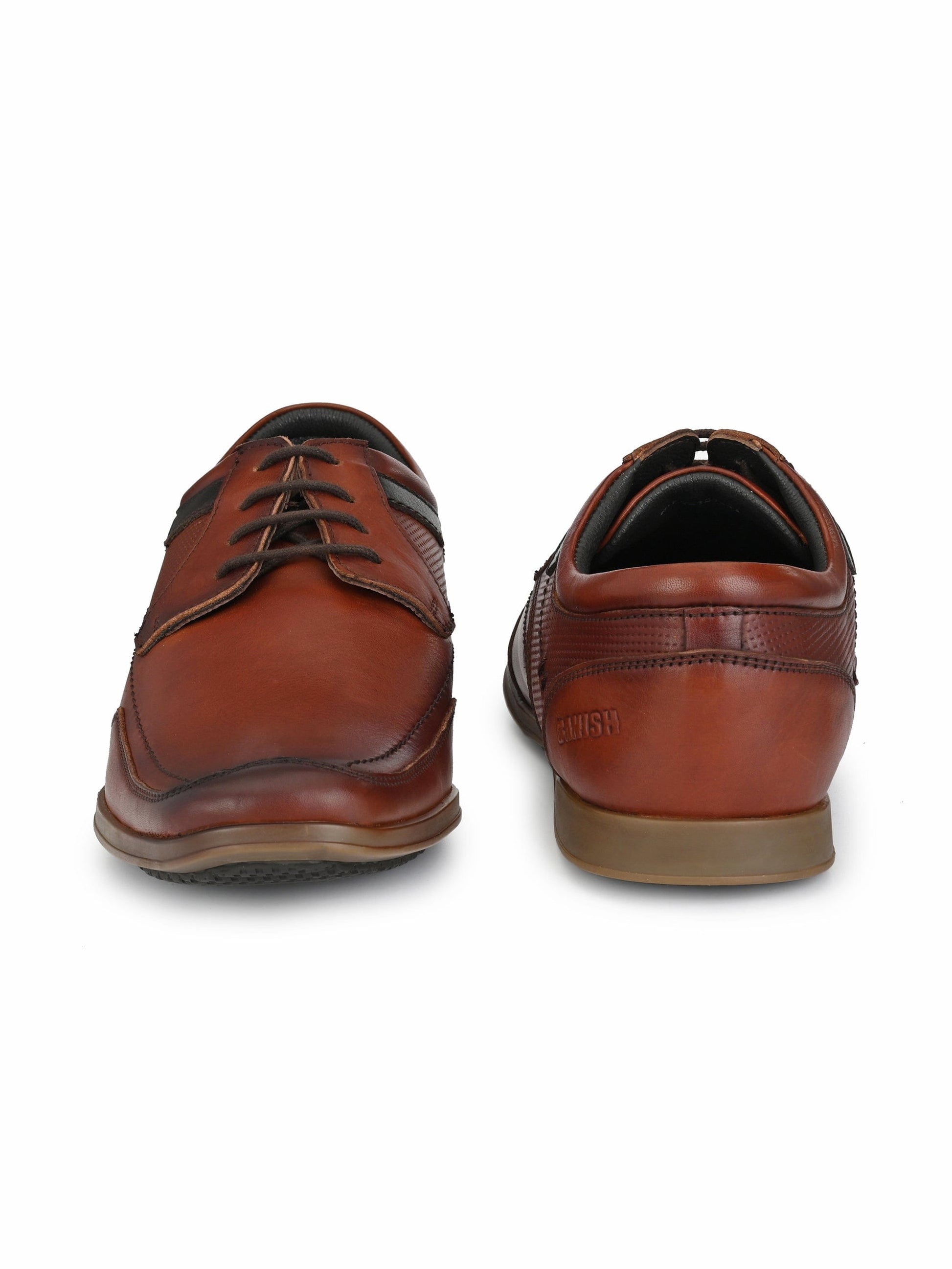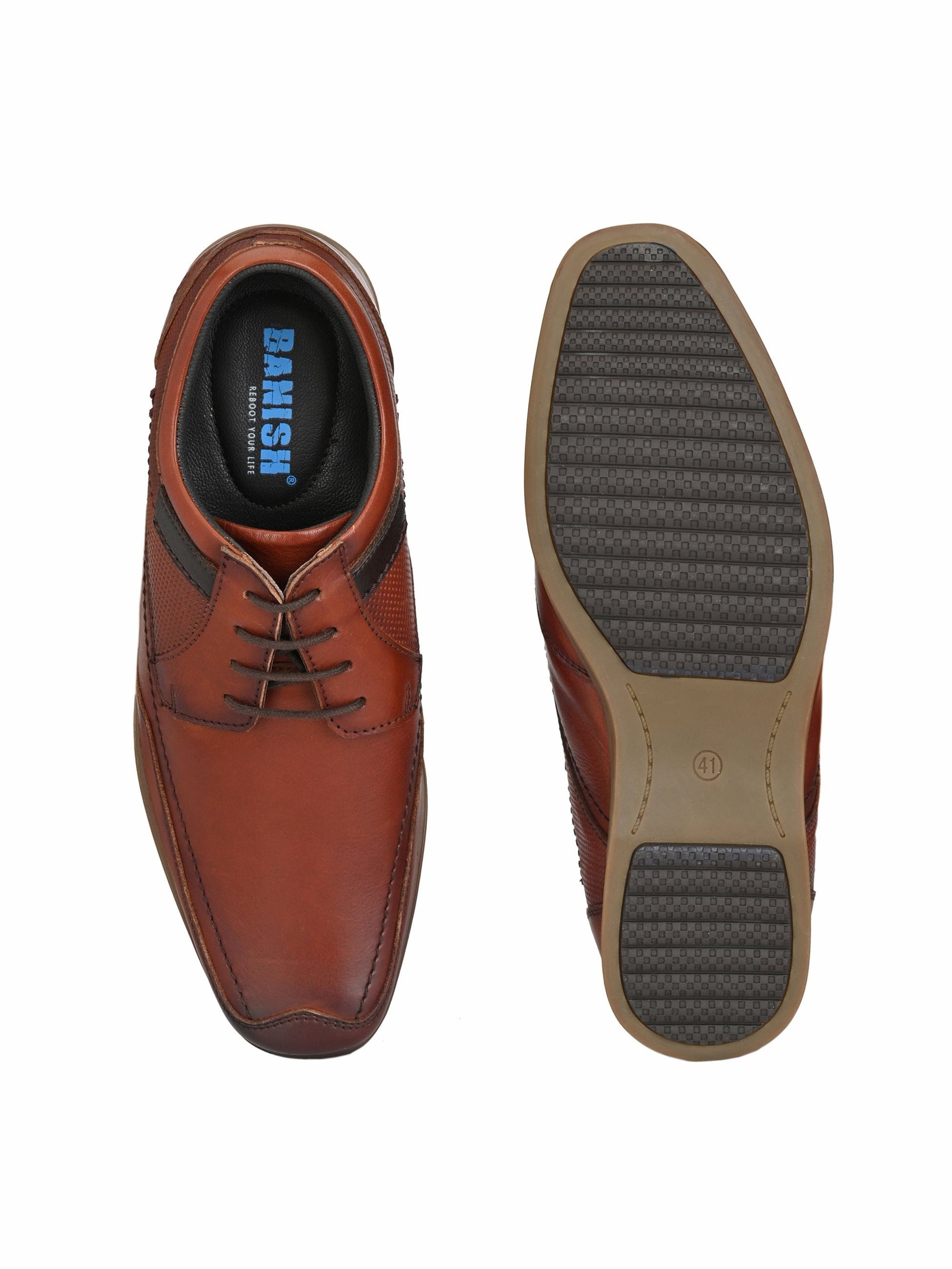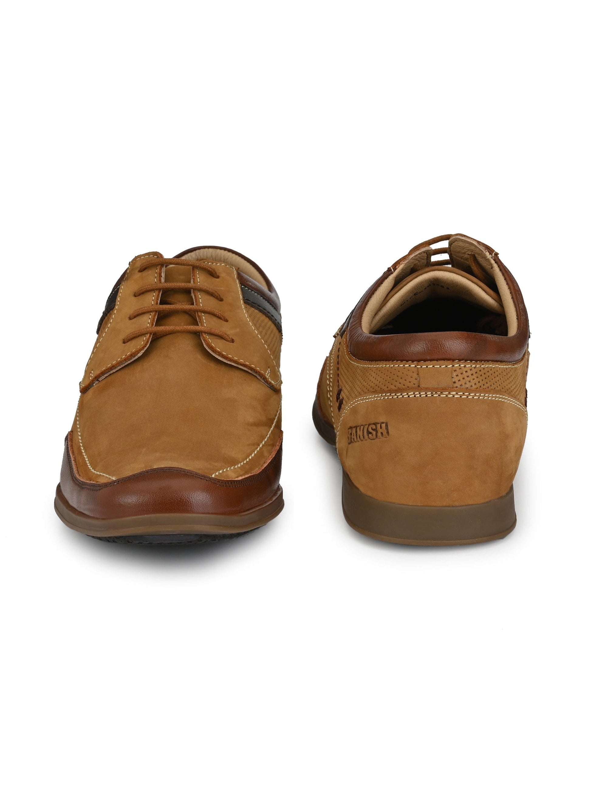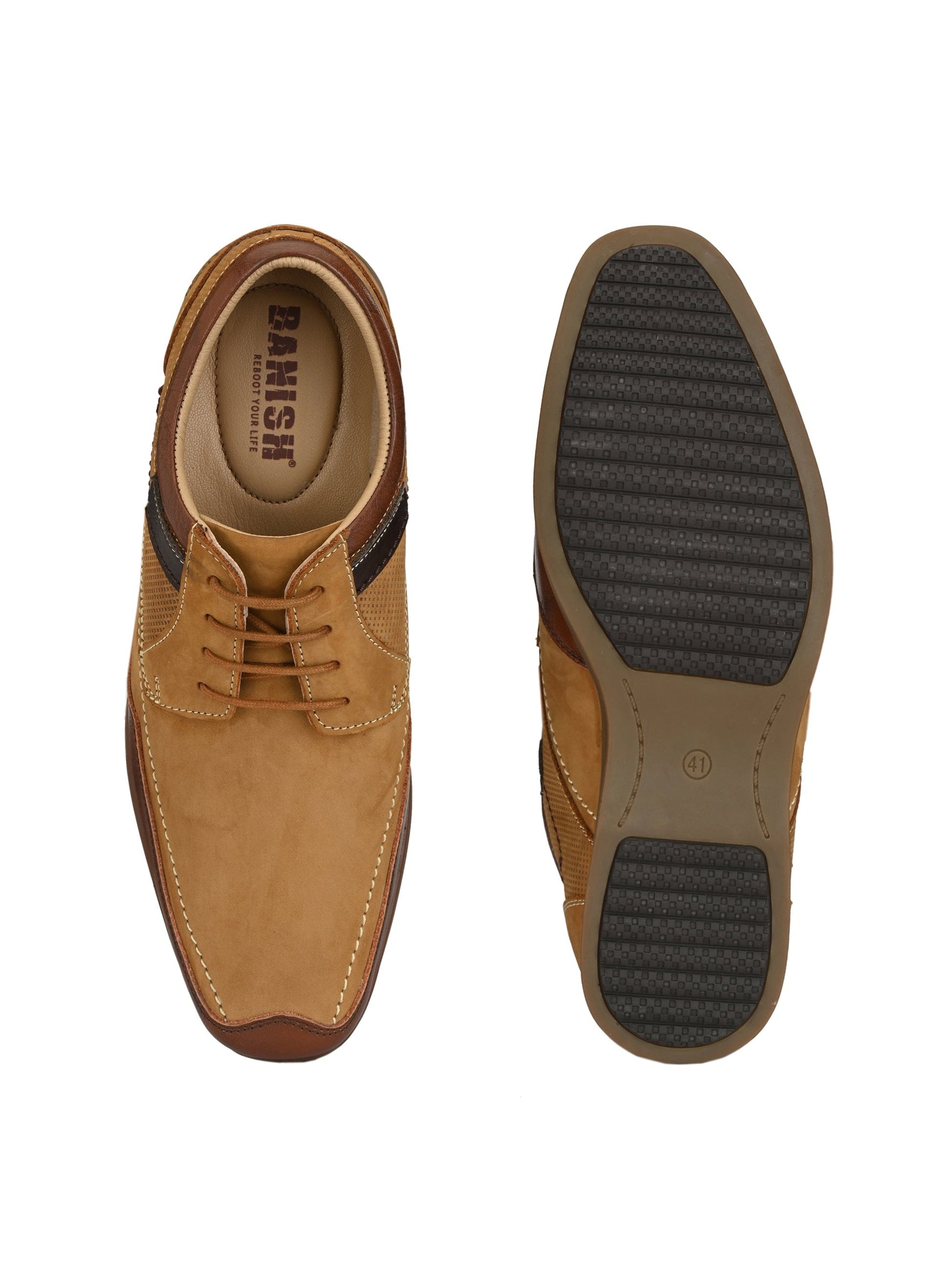 Mike Sepia Lace-Ups come with the most Premium Cow Nubuck Leather, which makes them class apart. Dual coloured TPR sole gives steadiness to the shoes, and moulded insole gives proper shape. Comes with Tan Crumbled Leather Combination to give a Casual Touch to it.