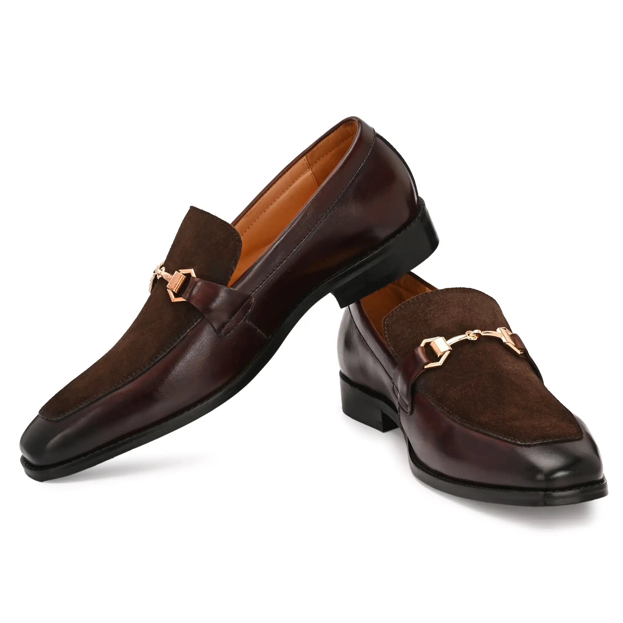 The Roma Bit Loafer is a refined expression of modern luxury, crafted for those who appreciate detail and balance. Featuring a premium mix of crust leather and rich suede, this loafer showcases depth, texture, and elegance in equal measure. Finished with a polished metal bit and set on a handmade outsole, it delivers timeless sophistication with artisanal craftsmanship—perfect for formal settings and elevated evening wear.