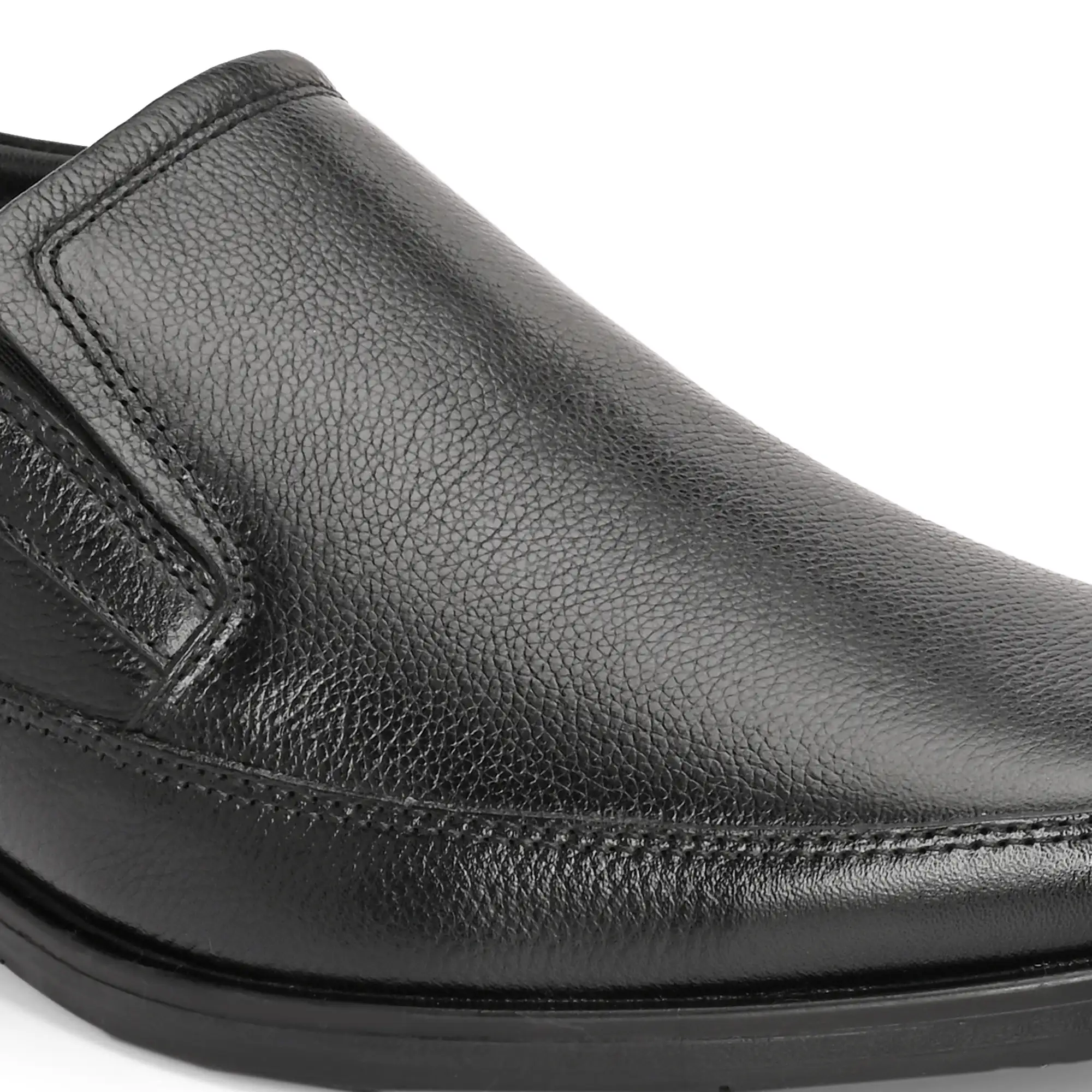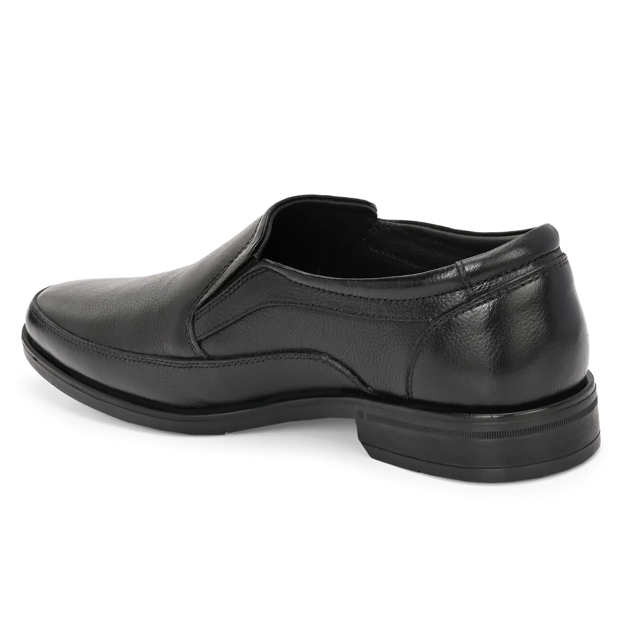 Designed for timeless formal style with everyday comfort, this slip-on shoe is crafted from premium milled leather, offering a smooth texture, natural softness, and long-lasting durability. The milled finish ensures flexibility and a comfortable fit from the first wear while maintaining a polished appearance. Built for extended office hours, the shoe features a durable TPR outsole that provides excellent grip, flexibility, and wear resistance. With its classic silhouette and easy slip-on design, this style is ideal for office wear, business meetings, and formal occasions.